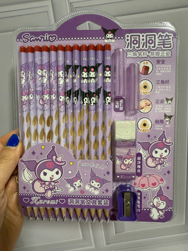 بسته مداد ۱۲تایی جاانگشتی به همراه تراش و پاک‌کن