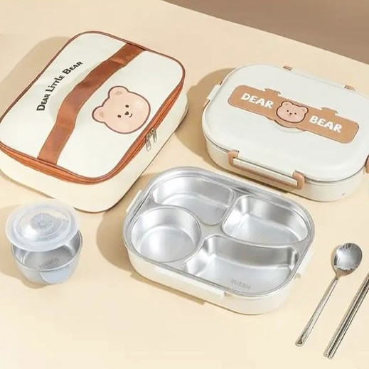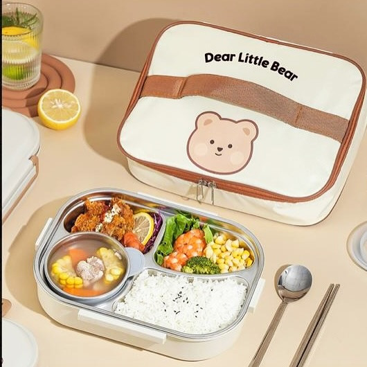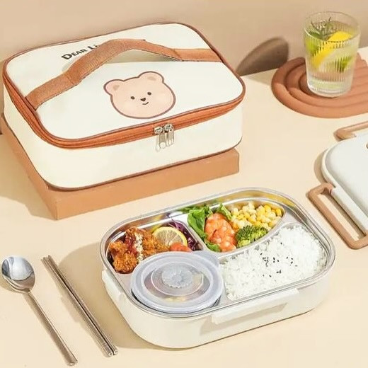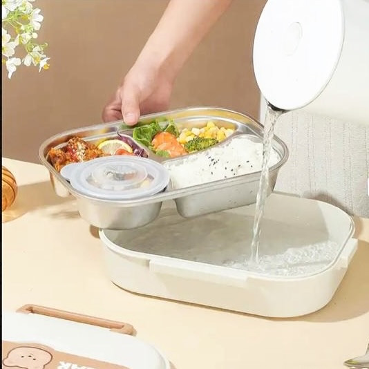 لانچ باکس کاملتر از این نداریم که جنس استیل بسیار باکیفیت ۳۰۴برای گرم نگهداشتن غذا قابل گرم کردن در فر، گرمکن و مایکروفر حتی به راحتی میتونین مخزن زیر ظرف استیل اب داغ بریزید و بعد از ۱۰ دقیقه به راحتی غذا گرم داشته باشید دارای واشر برای جلوگیری از نشت مایعات و غذا دارای کیف جذاب و زیبا محصول : @elaina_shop_ @elaina_shop_